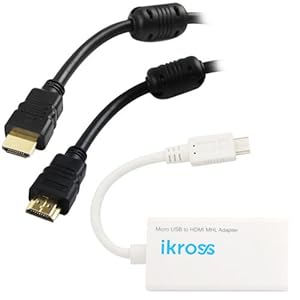 iKross MHL micro-USB to HDMI Adapter+6 Feet HDMI Cable for HTC Sensation 4G / Sprint HTC EVO 3D / HTC Flyer / HTC Jetstream / HTC EVO View 4G / Samsung Galaxy Nexus / Samsung Galaxy S2 S 2 SII S II i9100 i777 / Sprint Epic 4G Touch D710 / AT&T infuse 4G i997 / T-Mobile Hercules T989 / AT&T Galaxy S II Skyrocket / Captivate Glide i927